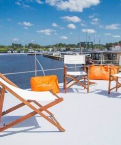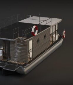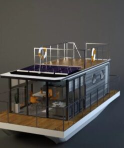 The boat house can be used all year round and can also have a number of applications. It can be a private house, houseboat for rent like a huge motorboat, the office of our company, unusual restaurant on the water, gastronomic and entertainment place. At the client’s request, we project the arrangement of rooms, external space and equipment for an individual project. Many of our clients keep day cruisers docked to this boat.